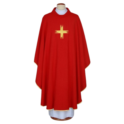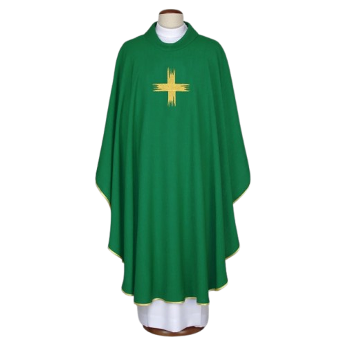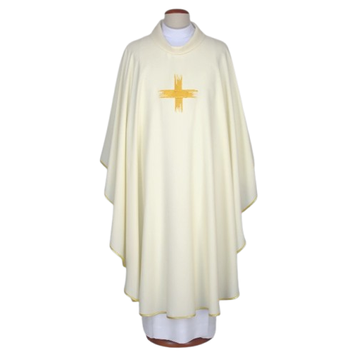 Ornát zdobený výšivkou, zakončený zlatou brokátovou lemovkou. Límec typu stojáček. Ornát je vyroben z lehké, prodyšné a na dotek příjemné tkaniny se strukturou připomínající len. Součástí je vnitřní štóla.