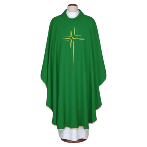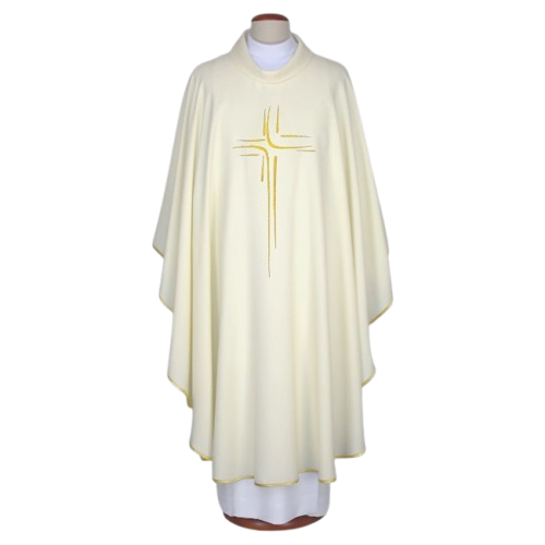 Ornát zdobený moderní výšivkou, zakončený zlatou brokátovou lemovkou. Límec typu stojáček. Ornát je vyroben z lehké, prodyšné tkaniny. Součástí je vnitřní štóla.