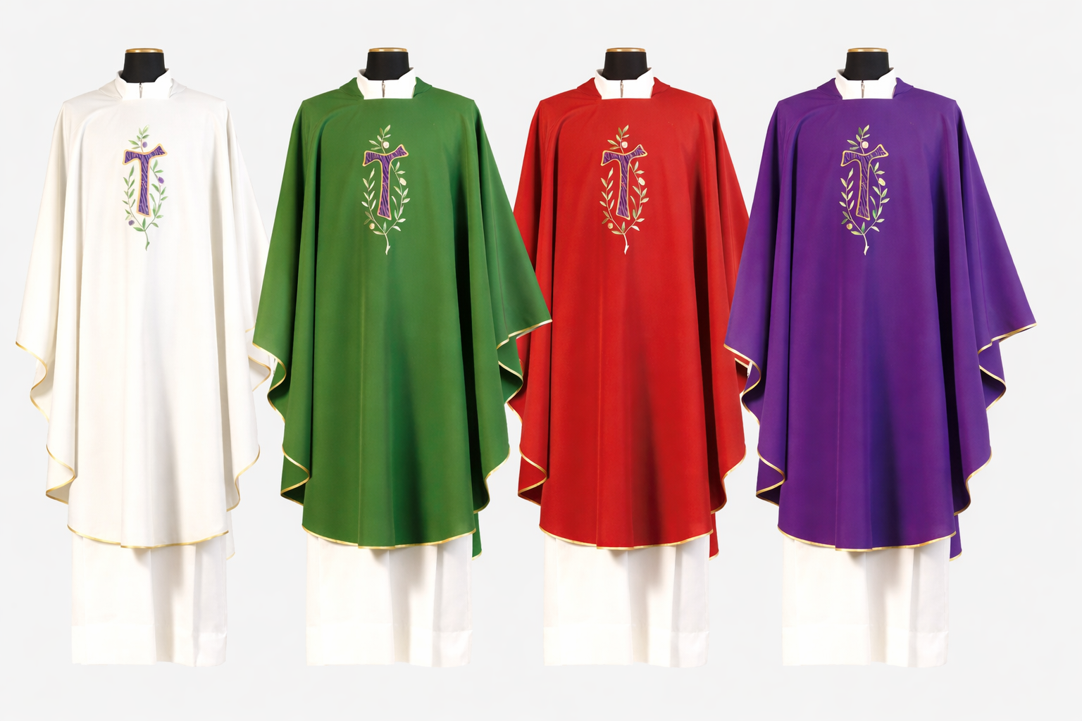 Ornát s křížem ve tvaru tau. Kříž tau, nazývaný také kříž svatého Antonína nebo františkánský kříž, má tvar řeckého písmene tau (Τ). Kříž tau je starobylý symbol, který v křesťanství získal zvláštní význam díky svatému Františkovi z Assisi. Představuje Kristovu oběť, spásu, pokání, obrácení, chudobu, pokoru a je symbolem františkánské spirituality a někdy i charity a ochrany.